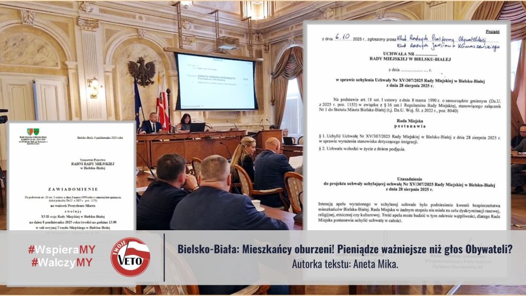 8 października 2025 r. w Bielsku-Białej odbyła się nadzwyczajna sesja Rady Miejskiej, zwołana w trybie pilnym. Radni głosowali nad uchyleniem uchwały sprzeciwiającej się przymusowej relokacji ludności — decyzja, która wzbudziła ogromne emocje wśród mieszkańców miasta i okolic. Wszystko zaczęło się kilka miesięcy wcześniej, kiedy mieszkańcy sami wzięli sprawy w swoje ręce i powołali Komitet „Bezpieczny…