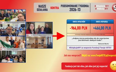 🔔 Sprawozdanie i rozliczenie działań Fundacji z 13 tygodnia (od 23 do 29 marca 2026 roku) – w sumie za trzy działania w terenie. 1️⃣ W środę 25 marca oraz czwartek 26 marca 2026 roku w Sejmie RP Prezes naszej Fundacji uczestniczył w posiedzeniach odpowiednio: w środę o godzinie 18:00 w podkomisji nadzwyczajnej do rozpatrzenia…