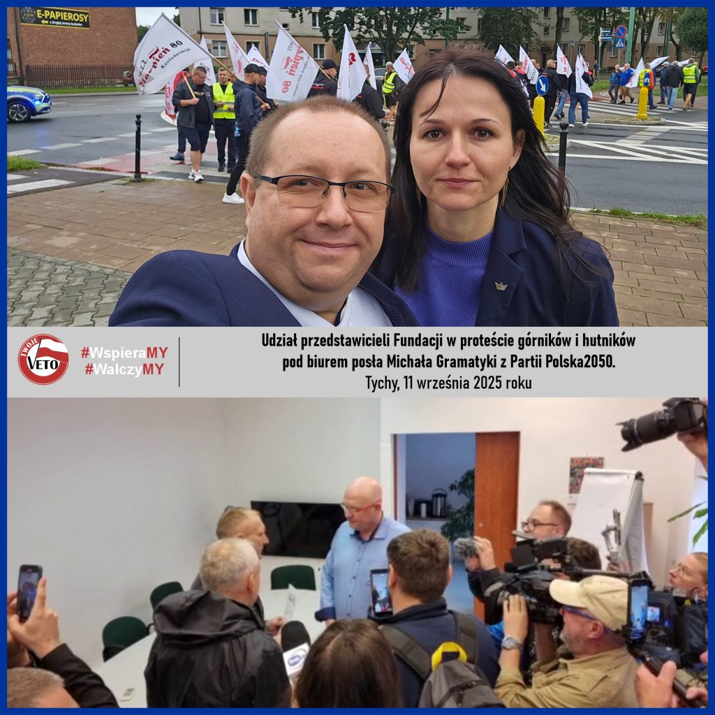 1️⃣ W czwartek 11 września od godziny 7:30 miał miejsce protest górników i hutników o przyszłość polskiego przemysłu ciężkiego. Protestujący zablokowali na godzinę ulicę Biblioteczną, a następnie odbyła się pikieta pod biurem poselskim Michała Gramatyki. Przedstawiciele Fundacji uczestniczyli w tym proteście i realizowali transmisję na żywo, a materiał z tego wydarzenia dostępny na naszych kanałach. Oddelegowani: Natalia Mehlich oraz Adam Kania.