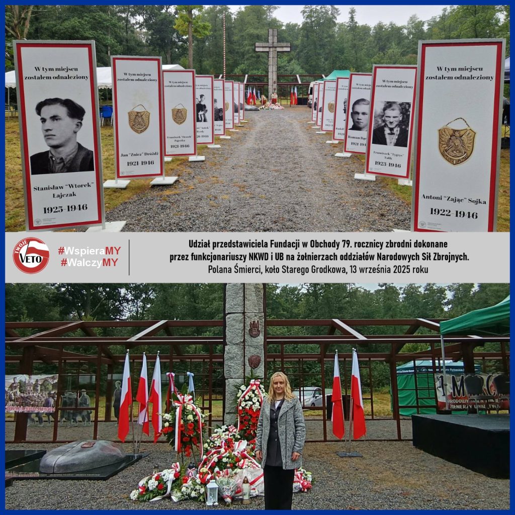 2️⃣ W sobotę, 13 września od godziny 11:00 nasza Fundacja uczestniczyła w obchodach 79. rocznicy zbrodni dokonanej przez funkcjonariuszy NKWD i UB na żołnierzach zgrupowania partyzanckiego oddziałów Narodowych Sił Zbrojnych kpt. Henryka Flamego ps. „Bartek”. Materiał wideo z tej wizyty dostępny jest na naszych mediach. Oddelegowana do tego zadania i relację wideo: Aneta Mika.